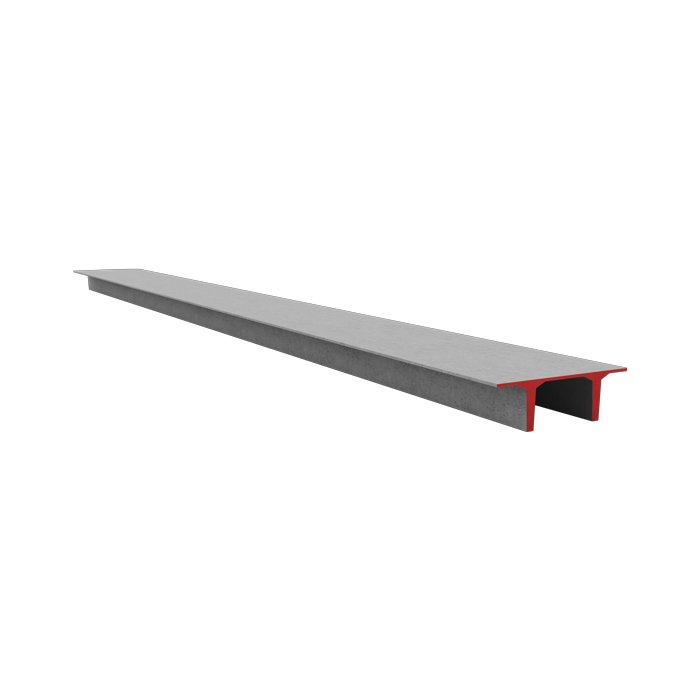 The double-slope beam is made of pre-stressed reinforced concrete, with slopes with an incline of 10%, has a minimum height at the supports that meets all structural requirements, and maximum height at the midspan.