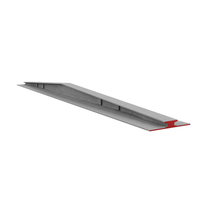 The two slopes of the element, with a constant slope of 6%, facilitate rainwater run-off. The low midspan height – and therefore ridge height – optimises weights and facilitates transport to the assembly site. The flat intrados slab offers excellent fire resistance, as it acts as a shield against fire exposure.