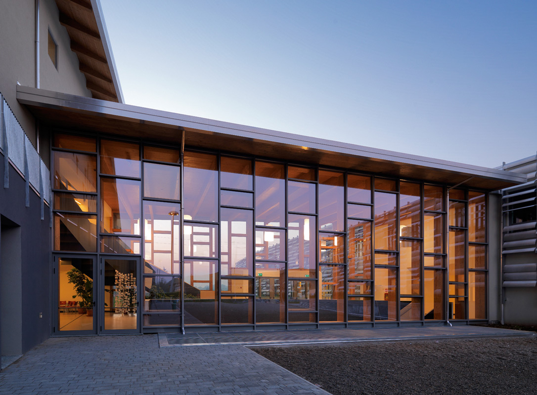 Weight, rigidity, reaction to humidity and temperature conditions make glulam and reinforced concrete two profoundly different materials in terms of characteristics and behaviour. In construction systems designed to meet the very latest requirements, combining these two materials and integrating them with glass, steel, and stone proves strategic to overcoming the limits of the individual elements and producing architectural designs of outstanding structural and aesthetic value.