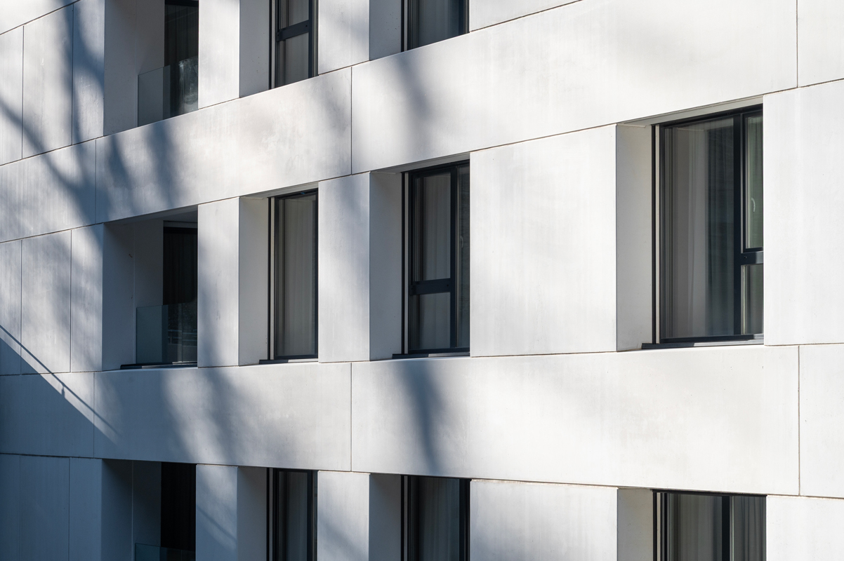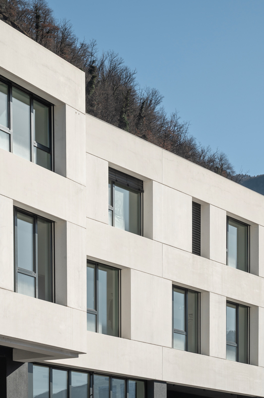 Construction posed several challenges. First, mid-project administrative approval was granted to raise the height of one of the two volumes, even though the structural design was complete and the site was already active. Although this was a major structural change, Moretti handled it swiftly and effectively. Second, the company’s design team had to customise the physical and chemical properties of the façade panels, which required special formwork. The concrete was doped with Italcementi’s TX Millennium, a photocatalytic cement whose active agent oxidises and breaks down airborne pollutants, helping the façade retain its appearance over time.