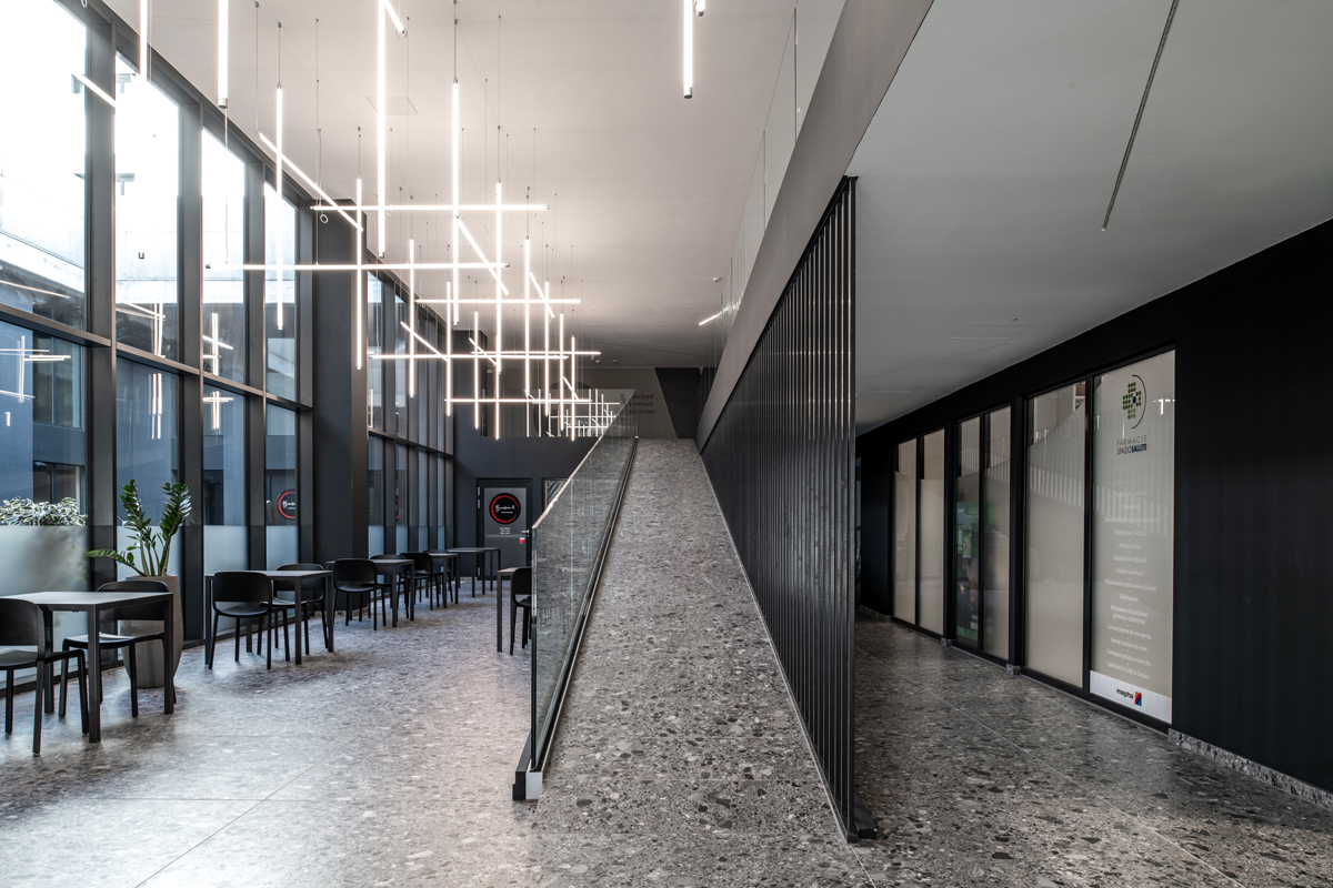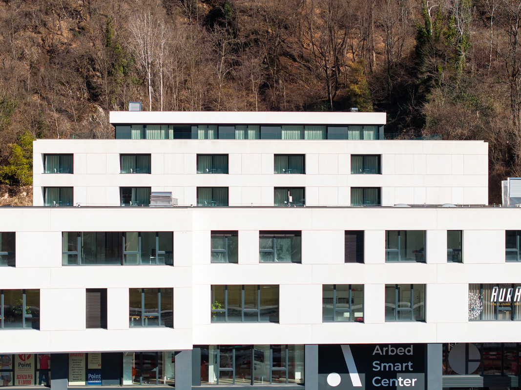 The Arbed Smart Center is a state-of-the-art, multifunctional hub whose design was developed in collaboration with several economists from SUPSI (the University of Applied Sciences and Arts of Southern Switzerland) and engineered, among others, by structural engineer Michele Graenacher of Galli & Associati SA.