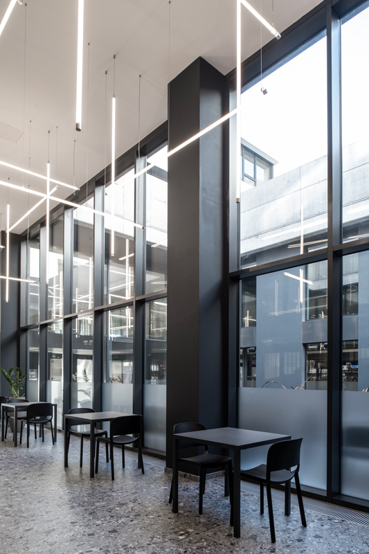 Moretti Modular Contractor played a pivotal role, taking full responsibility for the engineering, production and erection of all prefabricated elements. After casting the concrete parts, the team assembled and installed them together with the paired steel members—columns and beams. This combination, along with the flat RC slabs, produced an exceptionally slim horizontal package that easily accommodates building services without forcing bulky suspended ceilings.