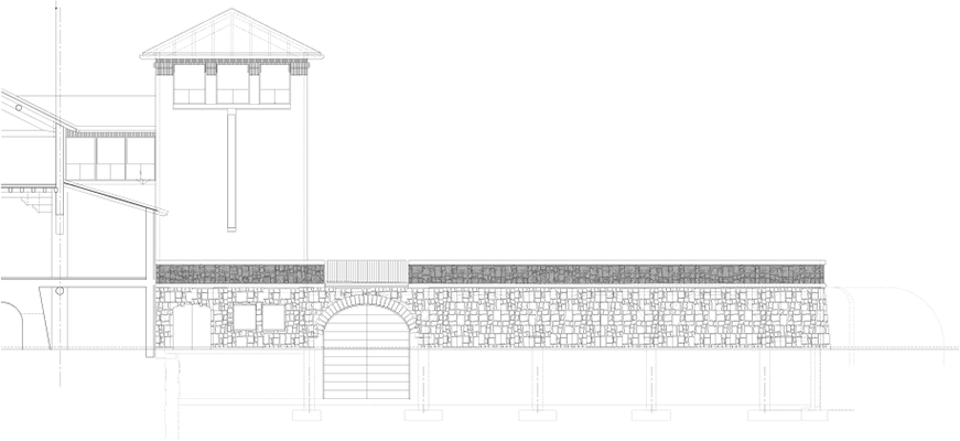 The new factory buildings took the place of some crumbling warehouses. A large pavilion roof with a glulam structure now houses the crusher. Using prefabricated reinforced concrete structures, the cellar areas were developed, consisting of a basement building on the east side. A central square tower encloses the vertical paths within almost completely closed façades, reminiscent of the ancient civic towers recurring in the area.