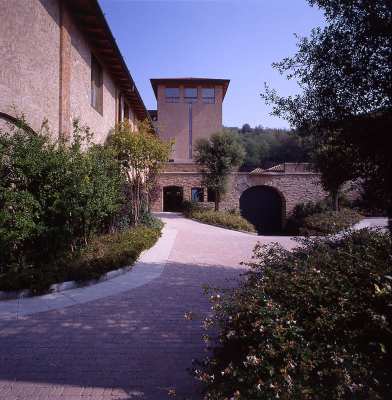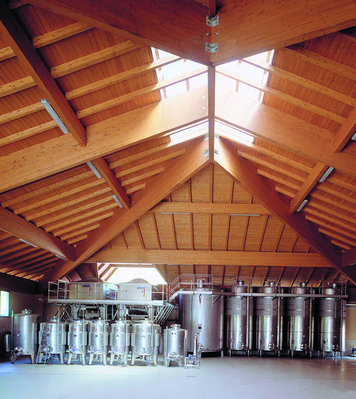 The new factory buildings took the place of some crumbling warehouses. A large pavilion roof with a glulam structure now houses the crusher. Using prefabricated reinforced concrete structures, the cellar areas were developed, consisting of a basement building on the east side. A central square tower encloses the vertical paths within almost completely closed façades, reminiscent of the ancient civic towers recurring in the area.