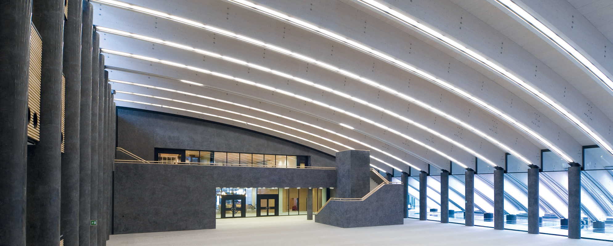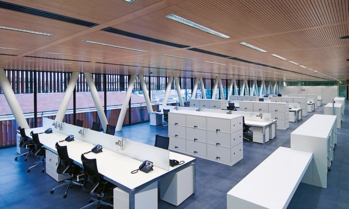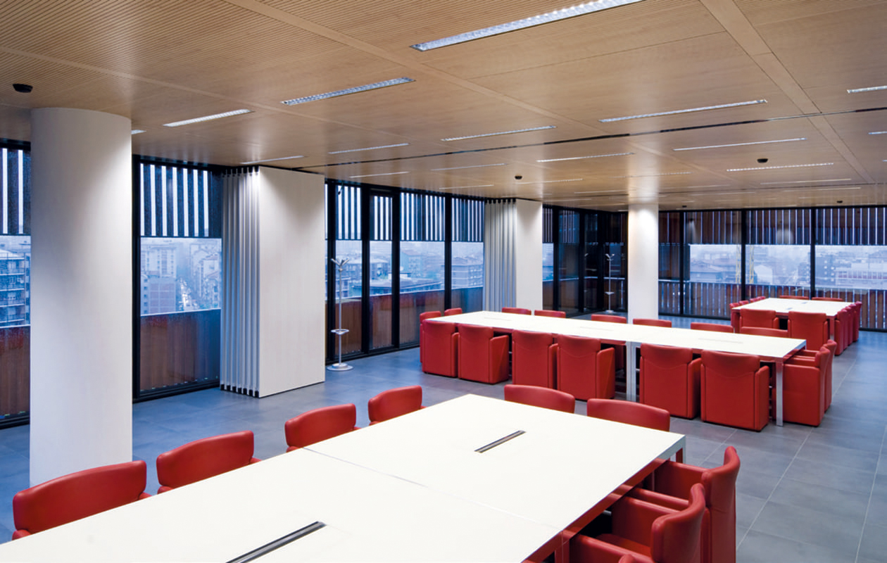 The building consists of nine above-ground floors totaling approximately 12,000 m2, including a 1,500 m2 2m2 lobby and a 1,000 m2 museum located within the historic building, as well as two underground floors totaling approximately 12,000 m2. The structure is entirely prefabricated. A series of concrete beams, pillars, and slabs was used for the underground floors. The above-ground floors consist of a block of nine floors and a mixed steel and prefabricated concrete central bridge structure, which is positioned at right angles and extends over the top of the existing historic industrial building. The covered plaza, constructed using prefabricated laminated structures, seamlessly transitions into the existing historic park, enhanced by the rooftop garden. The façades feature a “double skin” of glass and exposed terracotta, through the use of planks that, in addition to defining an aesthetic identity, have a sunshade function.
