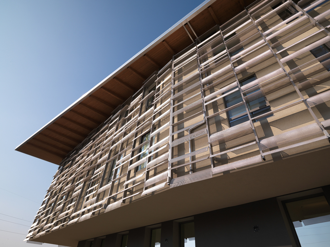 The building’s structure is mixed: reinforced concrete for the volumetric overhangs, with prestressed tiles for the open-plan spaces. Moretti Modular Contractor took care of the glulam beam and pillar system used in the middle school block, in the connecting volume and for the sail roof, while the north façade is made of prefabricated wooden panels.