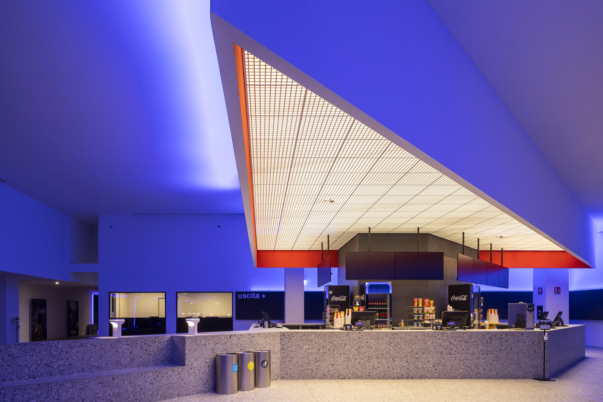The project chose to compact and uniform the volumes, preserving the precision generated by the external terracotta façades, graphic matrices of the “long” fronts of the complex. The same design and compositional characteristics are prolonged in the elevations of the multi-screen cinema.