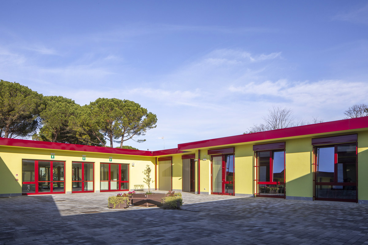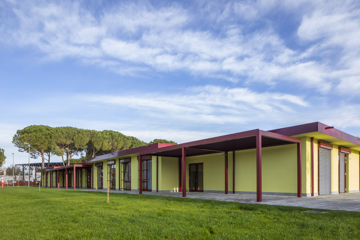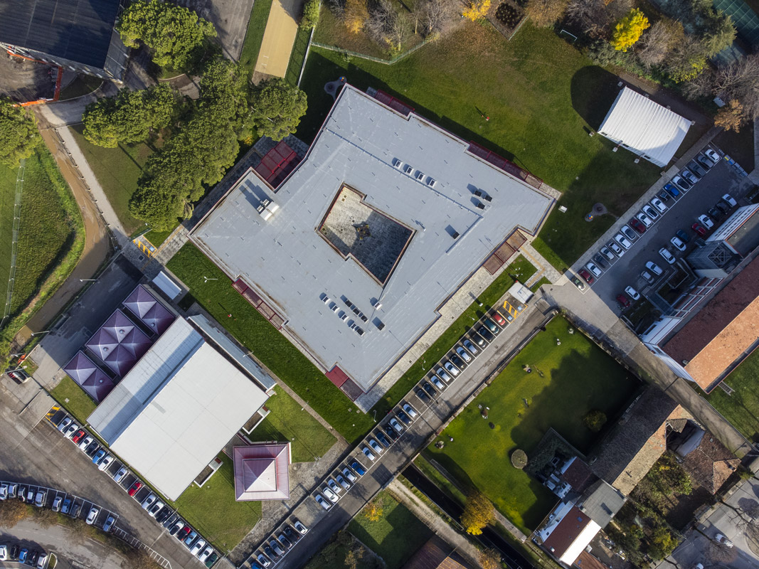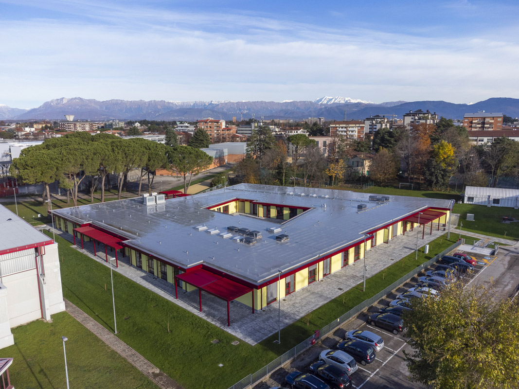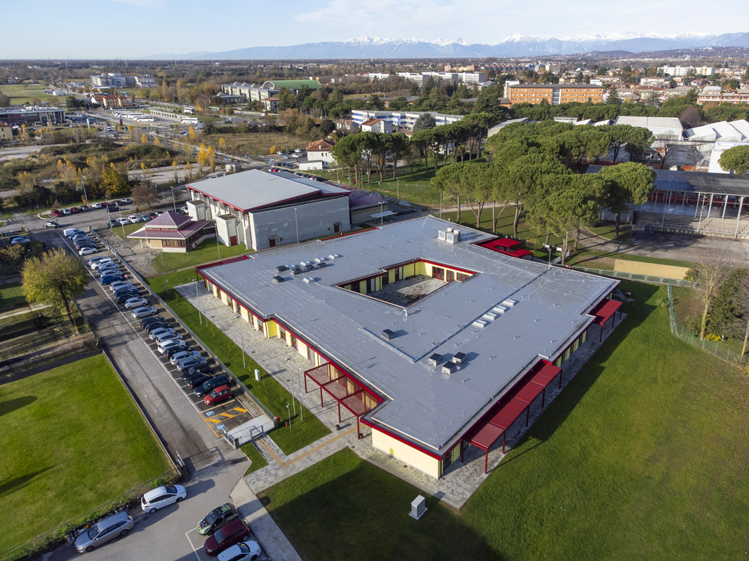 The new school in Udine is a typical wood-frame construction formed by a 60×45 cm cross-mesh foundation with a 16×39 cm raised curb that acts as a support for the wooden walls, ensuring shelter from infiltration. The foundation system is completed by a prefabricated igloo-type aerated crawl space with a height of 40 cm and 5 cm reinforced hood.